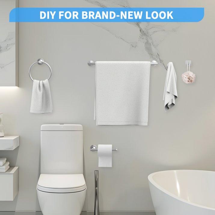 Reinforced brackets on each piece (towel bar, robe hooks, etc.) ensure strong weight support—perfect for hanging heavy towels, robes, or other bathroom essentials without wobbling.